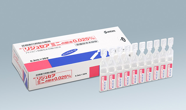当院では、お子様の近視の進行を抑制することを目的として、低濃度アトロピン(品名:リジュセア®ミニ点眼液0.025%)の処方を行っています。